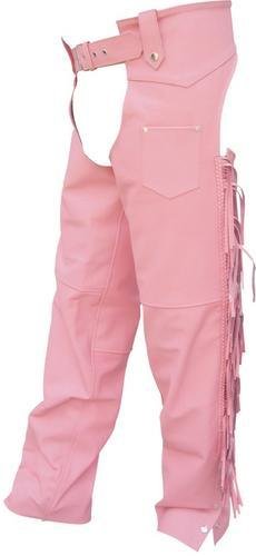 This Ladies Pink chaps is a great choice for every lady biker, It makes a statement! -------- made of Pink Dyed Split Cowhide Leather which is high quality leather that will last for many years. Hip-Hugger Style, Trimmed w/braid & fringe at sides for that stylish look. Fully lined for maximum comfortability, Front pocket & heavyduty silver hardware. ------------- These chaps are manufatured by Allstate Leather the most trusted name in motorcycle leather ------- RETURN POLICY, We are confident you will love these chaps, but in any case you are not happy we have a 30 DAY RETURN POLICY. simply contact our friendly customer service to get an RA # ----------- SIZING INFO, To get the exact size and avoid size exchanges refer to the allstate leather chaps size chart by clicking on the seller company name above and follow the link at the bottom of the page.